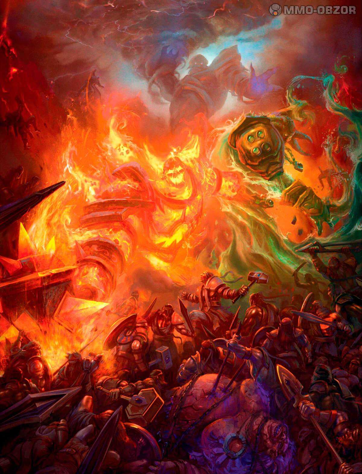 Армия Пантеона напала на Темную Империю, и Древние Боги задрожали. Чтобы не потерять свою власть над Азеротом, темные монстры бросили своих сильнейших рабов против существ титанов: элементалей и их хозяев. Сильнейшие воины — стражи Тира или Одина вызвались сразиться с самым разрушительным из элементалей — Повелителем Огня Рагнаросом. Битва бушевала неделя за неделей, но тела выкованных титанами Стражей были невосприимчивы к огненной ярости Рагнароса. Они загнали Лорда Огня обратно в его логово и победили его там. Остальные стражи и их войска также преуспели в своих битвах, элементали были побеждены.