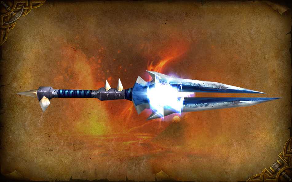 Это не просто деревянная палка с резным вороном на конце, а посох самого могущественного людского мага Медива. Во время вторжения в Азерот демоны посчитали игрушку хранителей слишком опасной и разломали ее на щепки. Если игрокам оригинального WoW все же удавалось собрать фрагменты Атиеша по всем уголкам планеты, то они становились самыми мощными кастерами в своих гильдиях. Споры за оружие разгорались нешуточные, ведь все хотели себе кучку пикселей, с которой Медив отжигал еще во времена своей молодости.