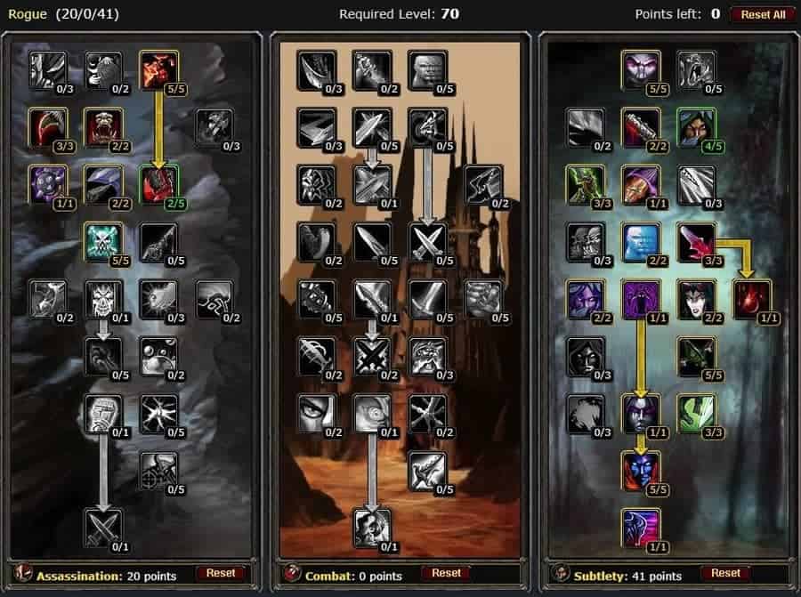 - Cloak of Shadows — снимает с разбойника все существующие дебаффы магии, проклятия, яда и болезней. Это исключительно хорошо как в PvP, так и в PvE и имеет очень короткое время восстановления, всего 1 минуту.