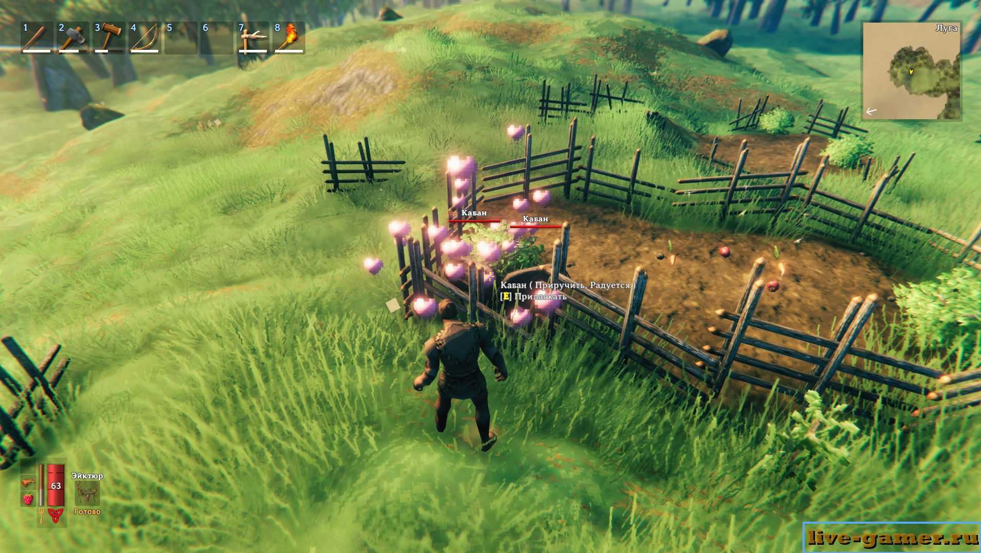 Самое первое животное, которое вы сможете приручить — это дикий кабан. Обычно кабаны появляются на лугах в большом количестве, поэтому у вас не будет проблемы с поисками этих зверей.