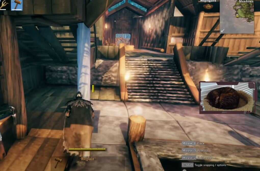 В процессе исследования биома вы найдете кучу полуразрушенных строений. Мы рекомендуем тщательно исследовать каждое из них, чтобы найти различные предметы, представляющие огромную ценность на начальном этапе игры. Также по локации разбросаны рунные камни. При взаимодействии с ними игрок может прочитать кусочек ЛОР-а Valheim или получить полезные подсказки.
