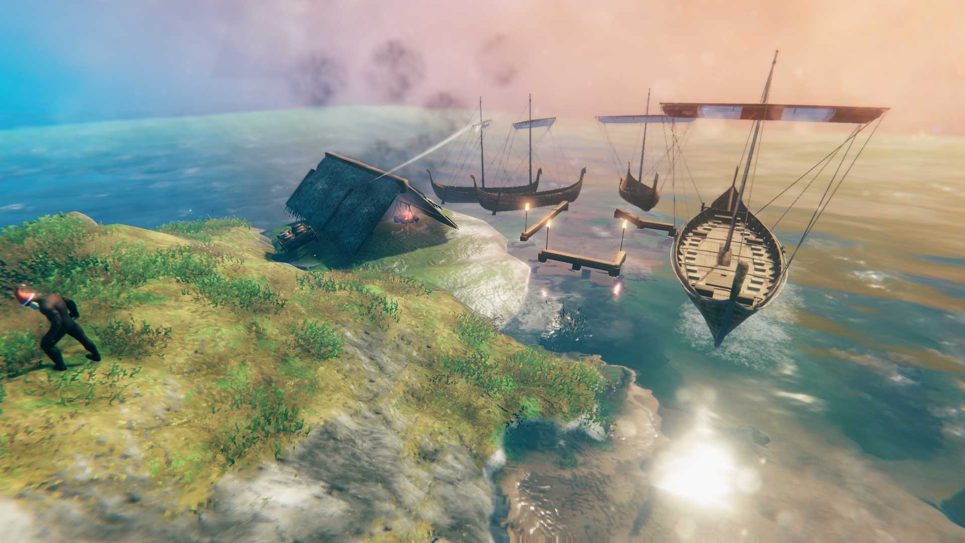 - Во время штормов в Валхейме бывает очень трудно плавать из-за больших волн, особенно на маленьких лодках. Тщательно выбирайте время для плавания.