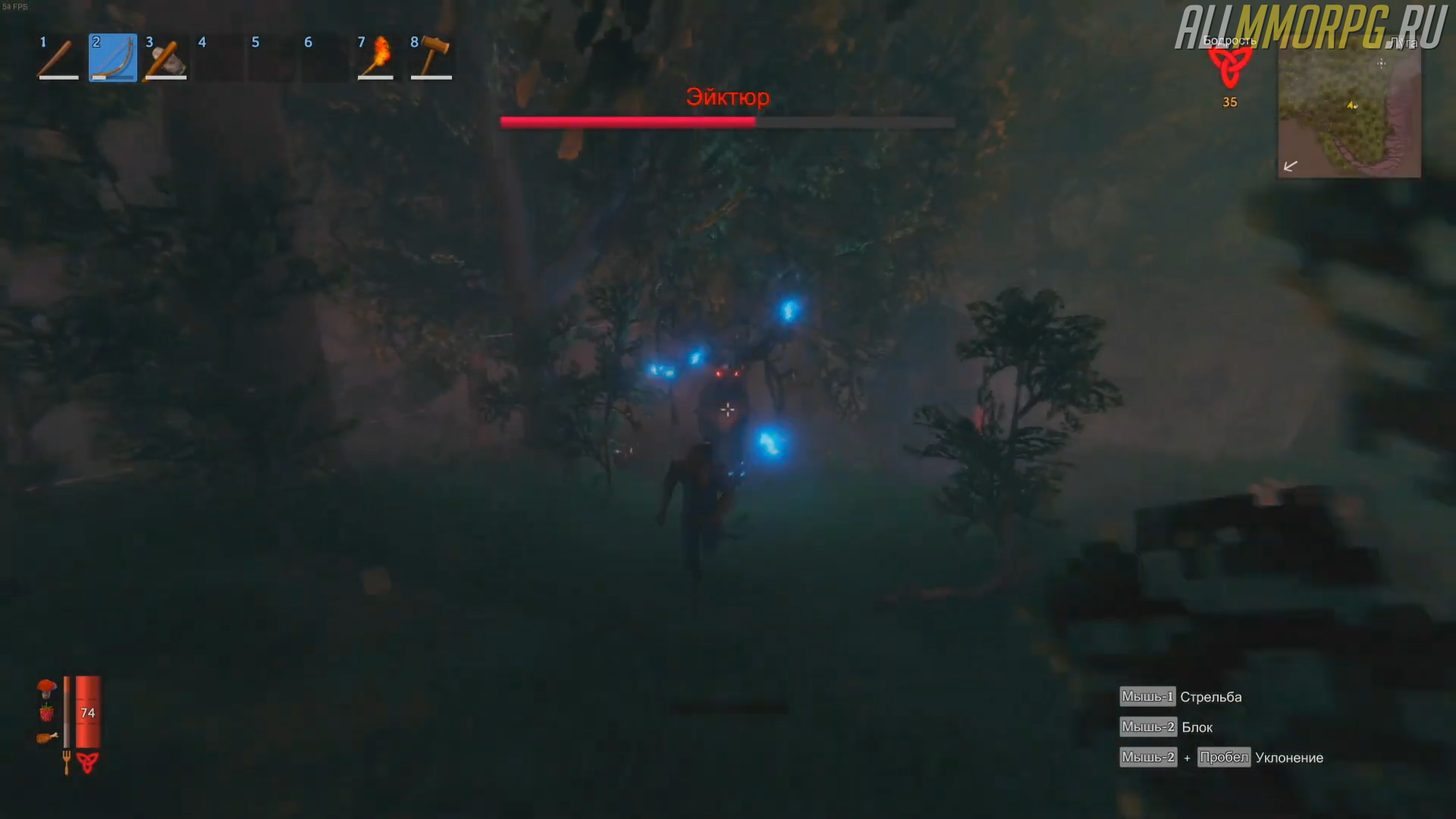 Чтобы вызвать Эйктюра, нужно выбить 2 оленьи головы. Их требуется положить на каменный алтарь. После на локацию опустится туман и к вам выйдет монстр. Стреляйте в него из лука, прячась от атак за камнями. После победы над боссом не забудьте собрать лут.