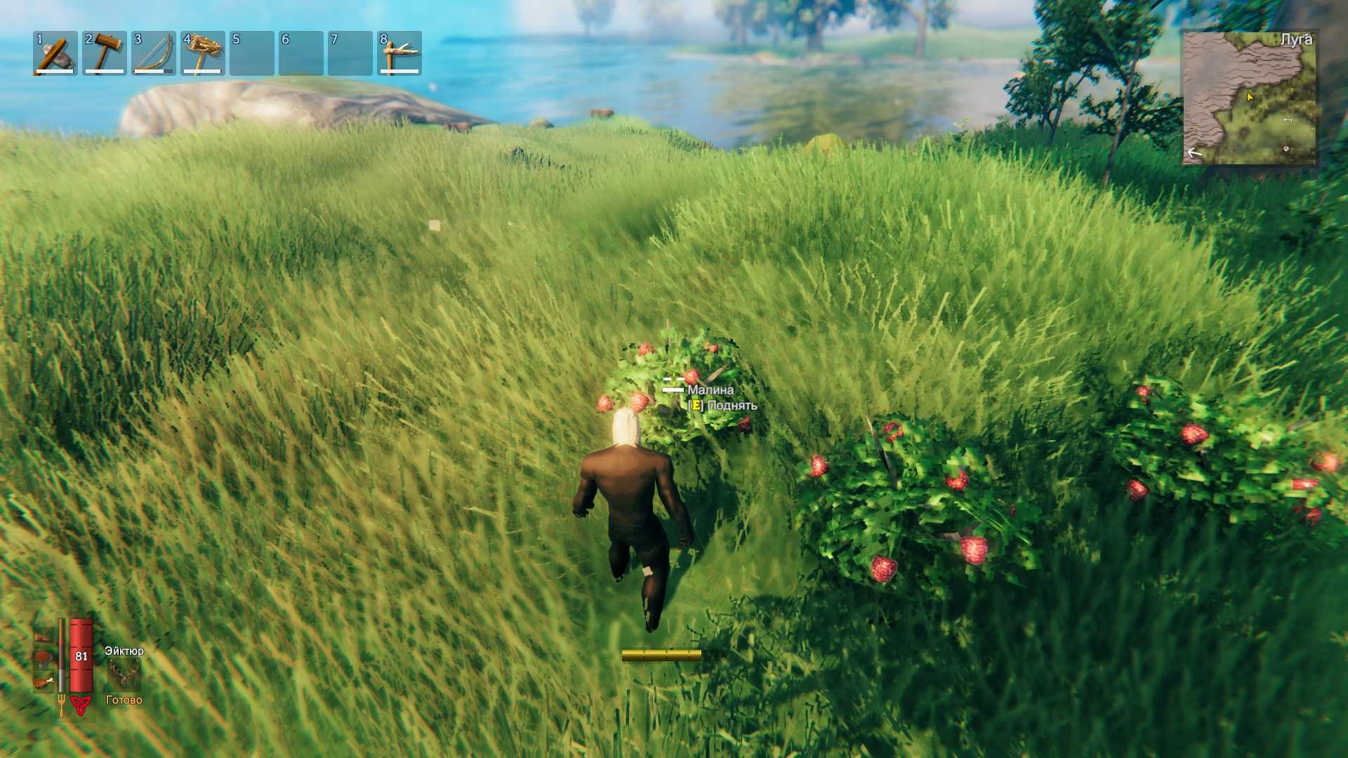- Малина (здоровье +10, выносливость +20). Самое распространенное растение в лесах. Растет практически везде и восстанавливается через несколько дней после сбора. Чтобы собрать малину, найдите куст с ягодами, подойдите к нему и нажмите на клавишу «Е»;