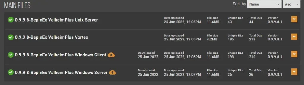 - В случае с Valheim Plus, нам понадобится загрузить два отдельных архива – для клиента и сервера.
