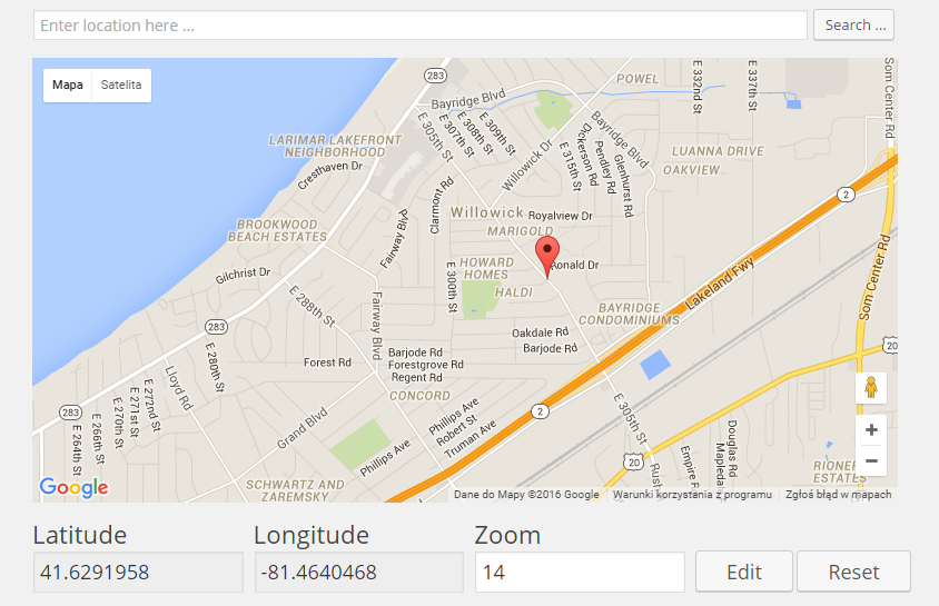 - Options – currently only one option, checking it allows to fill location with a single click, the location is picked from user browser. In other words, the single click allows filling the location form with current user location (notice blue crosshair on the first image).