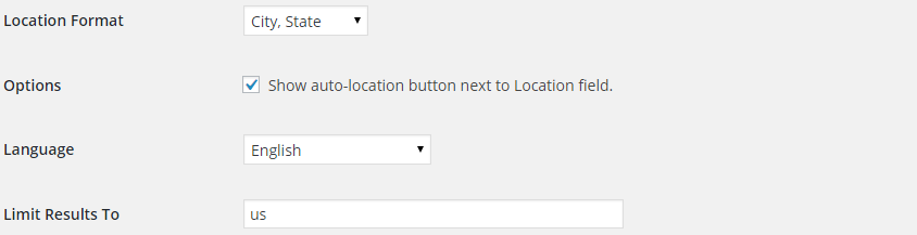 - Limit Results To – enter two-letter ISO-3166-1 country code here, this will force Google Autocomplete to return results for your selected country only.