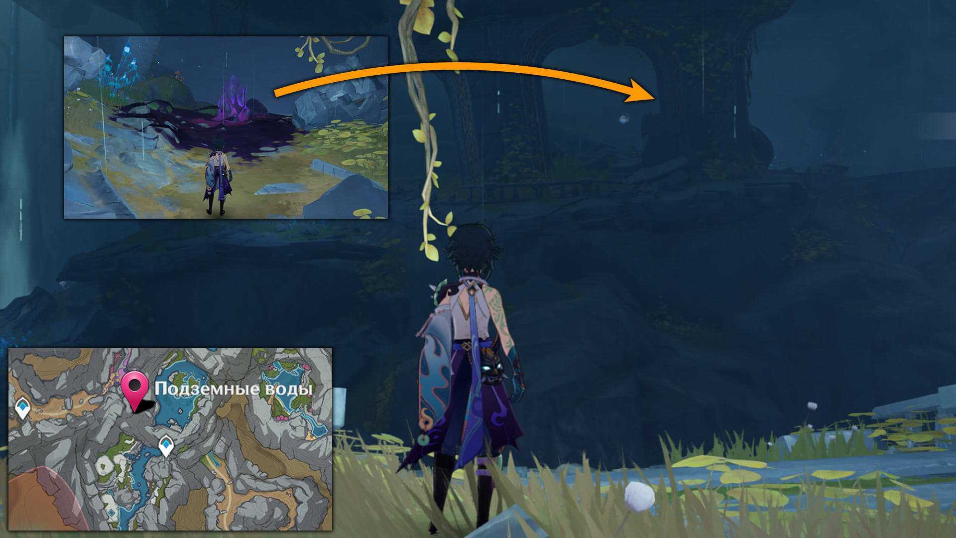 Перемещаемся в область «Подземные воды». Скважина находится за колоннами.Награда: Обычный сундук.