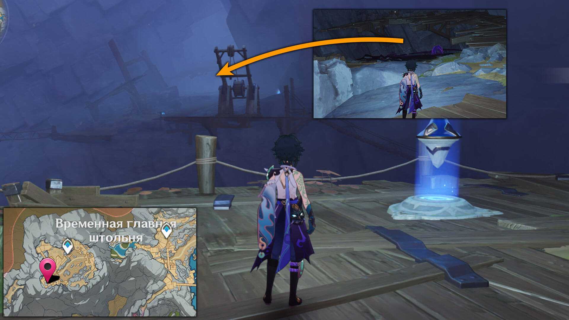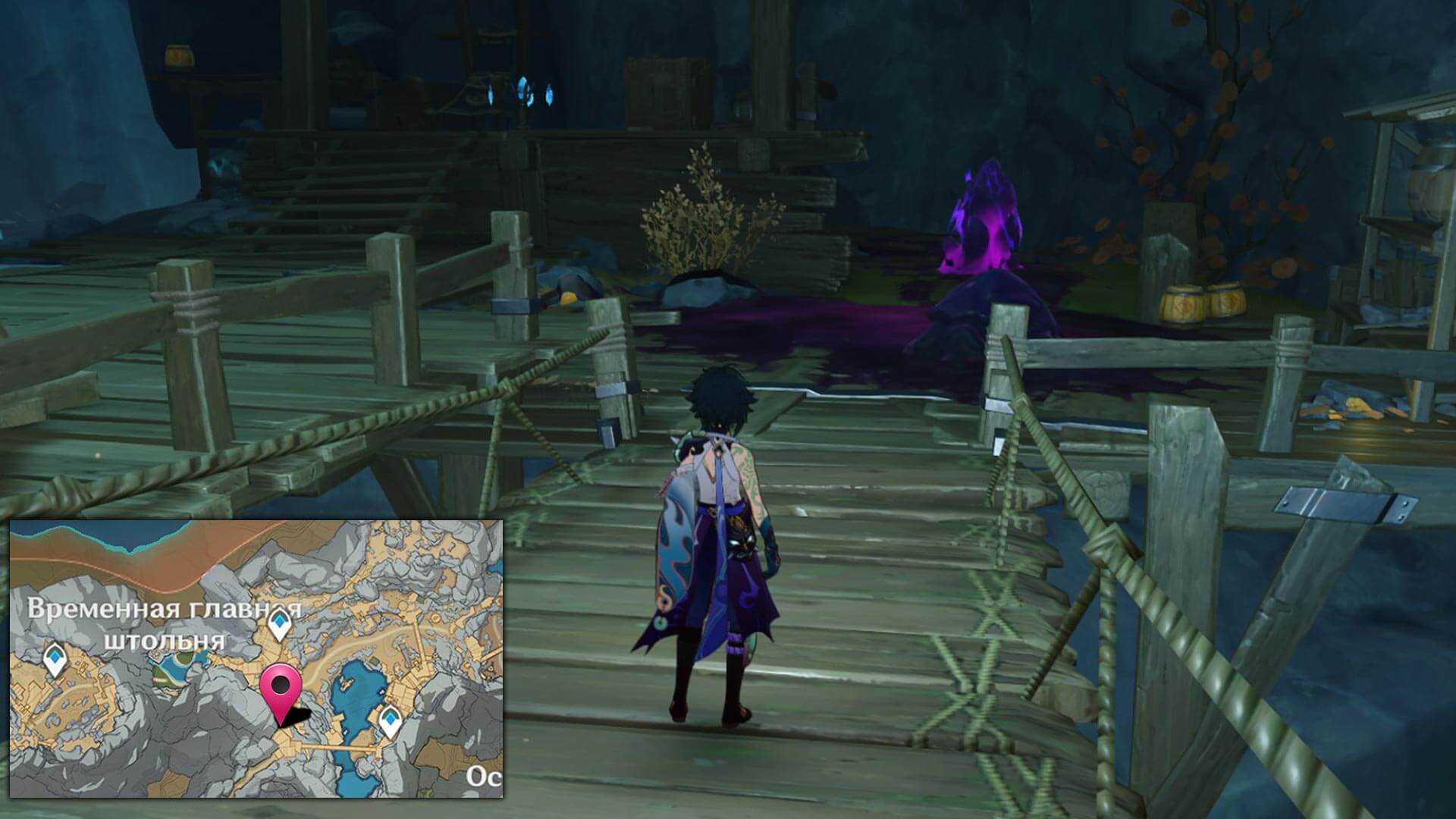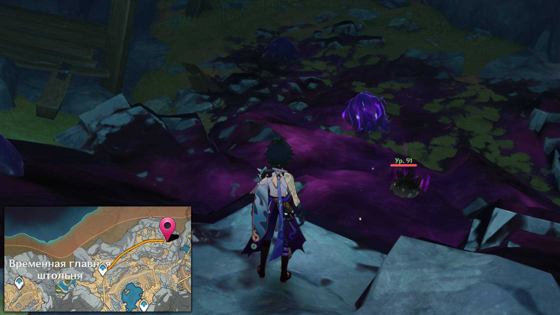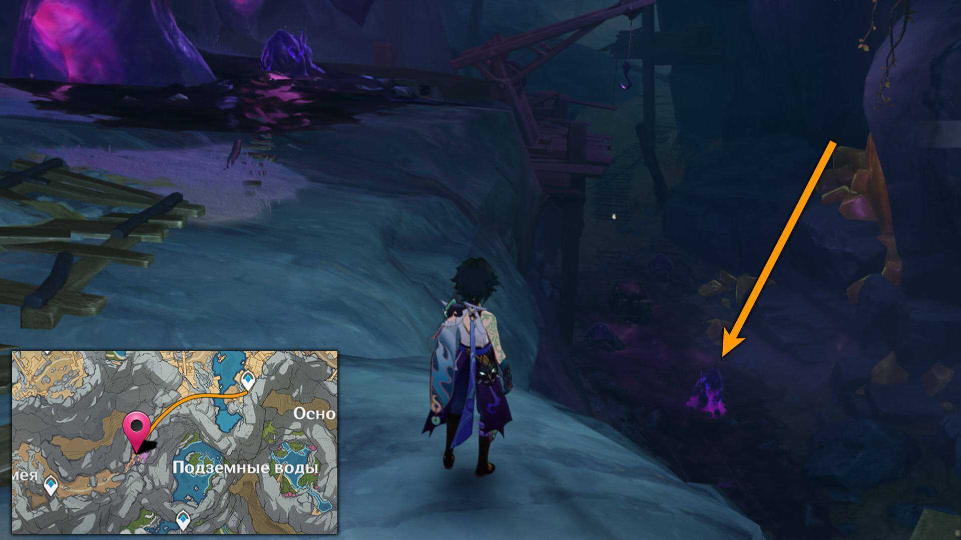 Перемещаемся на самую нижнюю Точку телепортации и бежим по тропинке слева. Грязевая скважина находится у руин, а неподалеку у домика феи можно найти скрытую стену, за которой находится один из рыцарей для получения жемчужины бездны.Награда: Обычный сундук.