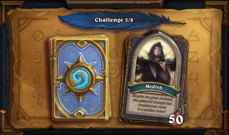 The fight against Medivh turns into a classic Warlock versus Mage match – but with a couple of twists. Medivh will equip Atiesh as his Hero Power, while we will be able to replace an enemy minion with a friendly demon on our board that costs one less. For 4 mana, this sounds very expensive, and it is; however, it gains more and more value against bigger and bigger threats.