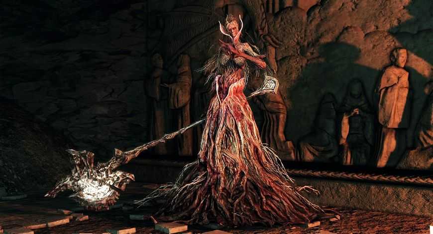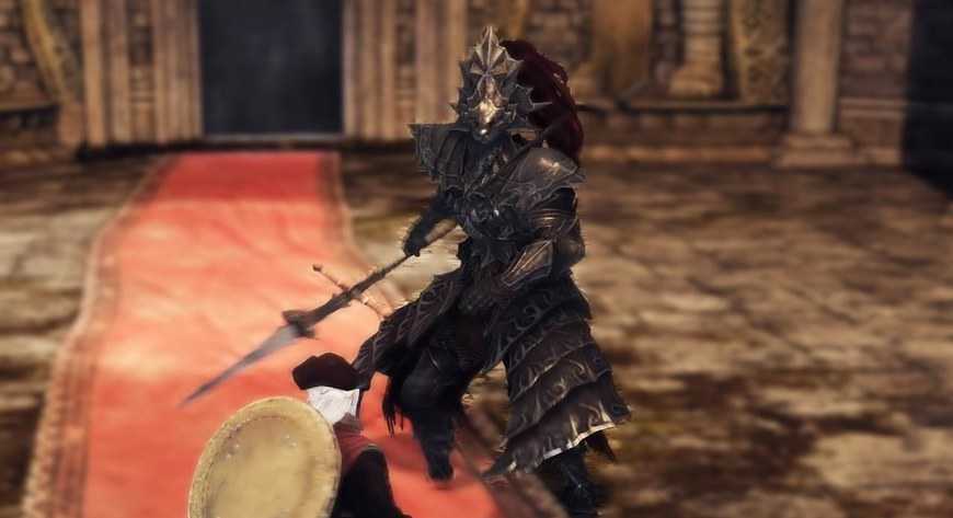 Несмотря на то, что путь к нему открыт сразу же после убийства Аавы, то не советуем бежать, сломя голову. Если пройти по Элеум Лойс повторно, когда метель улеглась, то удастся найти сразу трех помощников-рыцарей. Они будут вступать в бой вне зависимости от уровня человечности Полого.