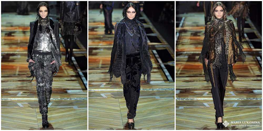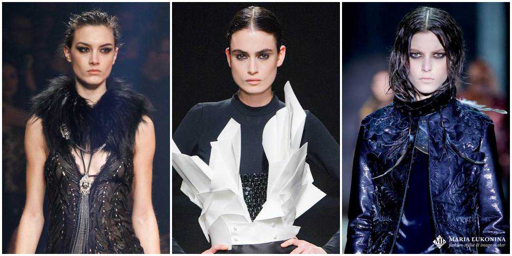 В деталях одежды можно выделить: летящие элементы, клешеные рукава, капюшон, вещи на запах, бахрома, шнуровки.