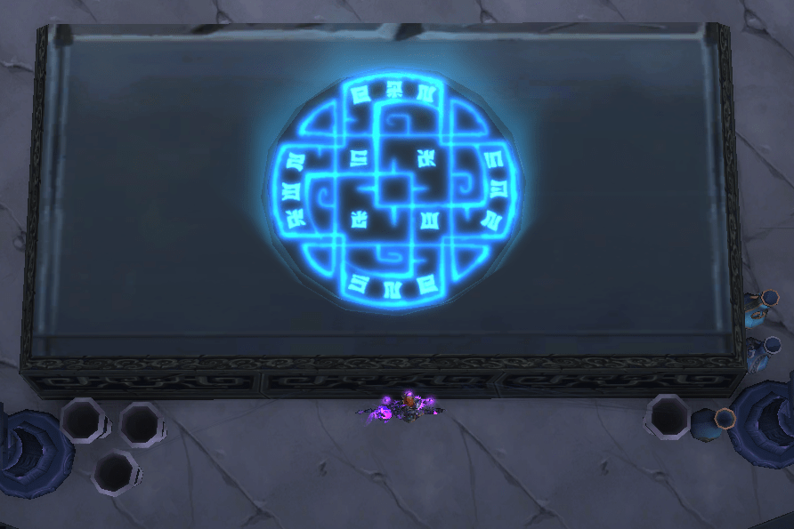 Вылетаем в Пандарию! В локацию — Вершина Кунь-Лай. Летим по координатам /way 53 49 и входим в помещение. Двигаемся до упора, перед статуей стоит Урна.