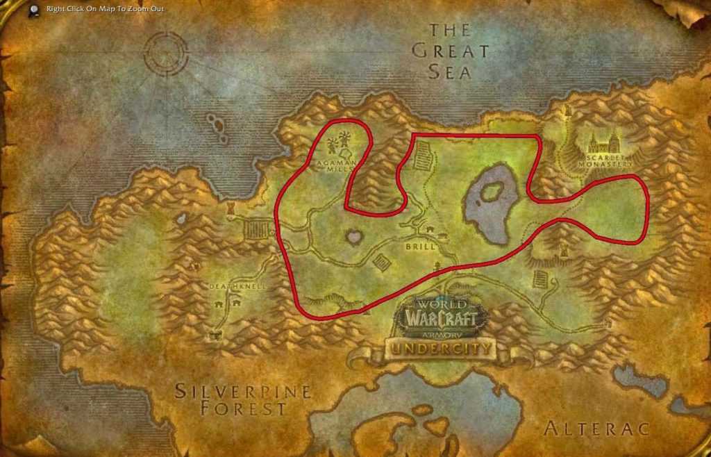 Тирисфальские леса: Тирисфальские леса — это стартовая локация нежити. По сравнению с Дуротаром локация является, мягко говоря, неудачной. Вы можете фармить руду в Тирисфальских лесах по указанному маршруту, но мы настоятельно рекомендуем вам побыстрее переместиться в Серебряный бор.