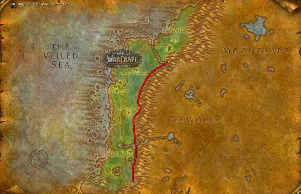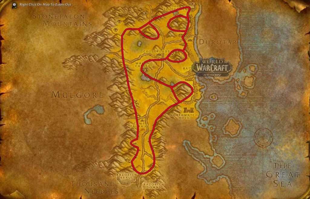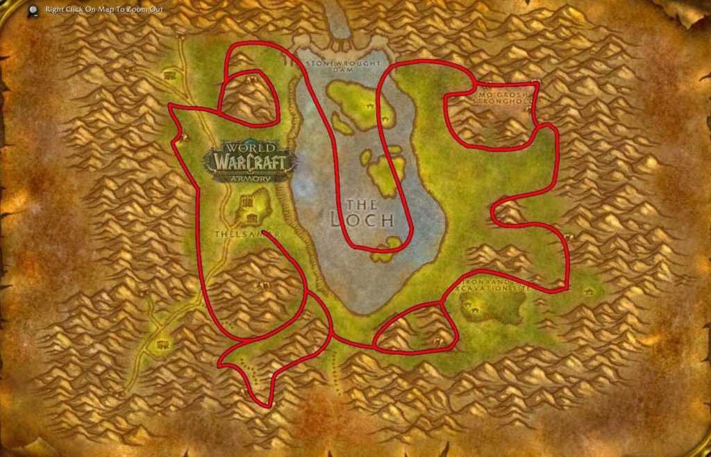 Как правило, локации в WoW отделяются друг от друга горными массивами, поэтому зачастую наиболее практичный и простой маршрут состоит в облете границ локации вдоль гор.