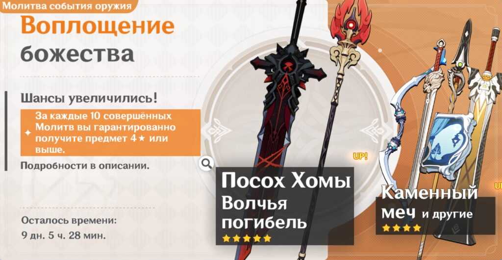 Путь воплощения дает возможность гарантированно получить желаемый предмет, но для этого нужно получить 2 очка судьбы. Каждое очко это «ненужный» 5* предмет. Таким образом, если вы совсем невезучий человек, но имеете в своем распоряжении 240 круток, вы совершенно точно получите нужное 5* оружие!