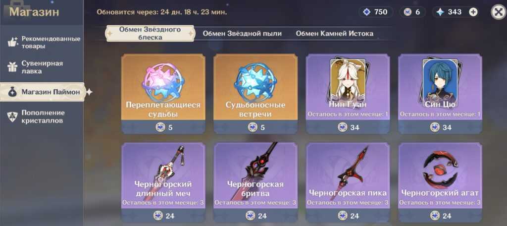 Для покупки во внутриигровом магазине (клавиша Esc – «Магазин» – «Магазин Паймон») используются аж три разных валюты: «Камни истока» (основа основ!), «Свободный звездный блеск» и «Свободная звездная пыль».