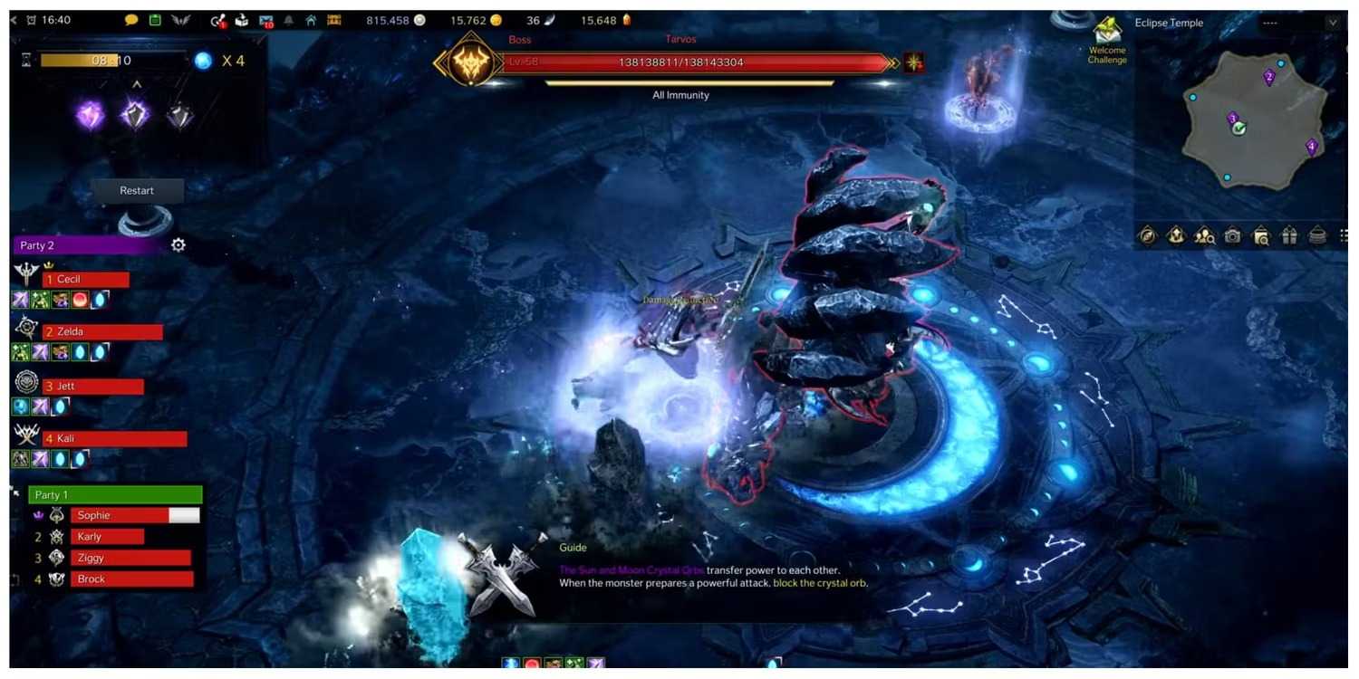 Команда Луны будет перенесена на другую платформу, чтобы сразиться с Тарвосом, мини-боссом. Основными атаками будут удары волной, атаки шипами и взрывные мины. Игроки на обеих платформах должны уничтожить тотемы по краям своих карт. Если оставить их стоять слишком долго, это приведет к уничтожению другой команды.