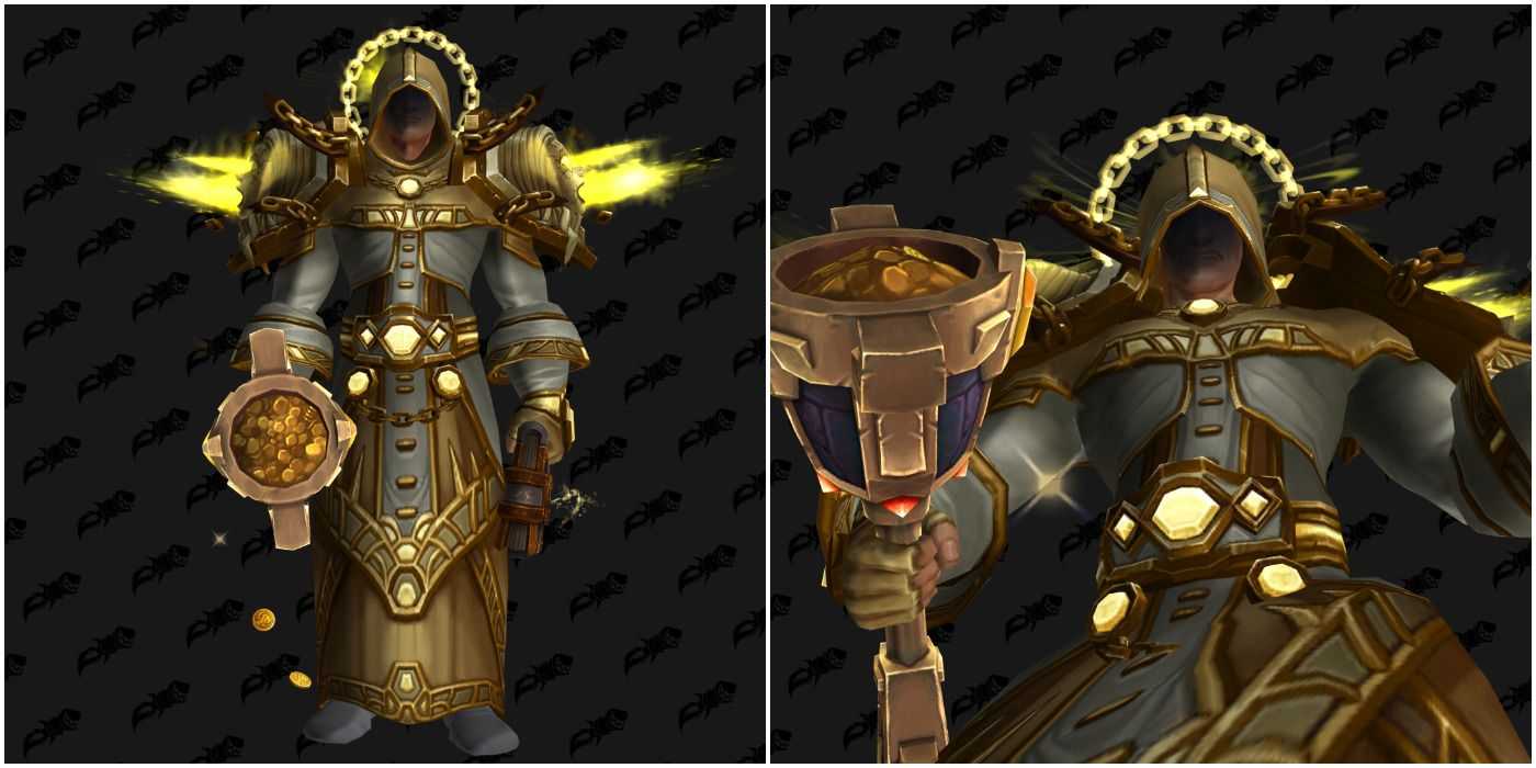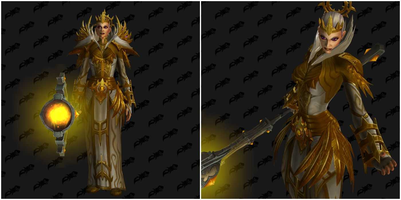 Несколько комплектов брони Мир Warcraft такие же детализированные, изысканные и величественные, как Позолоченные Одеяния Серафима. Мифическая версия сета самая сложная, с золотой короной, большим воротником и золотыми крыльями на плечах. Сама мантия украшена золотыми перьями на бедрах и плечах, а также большой трехмерной лентой вокруг предплечий. На правой руке есть даже 3D-кольцо. Эта трансмогрификация жреца выпадает из Анторус, Пылающий Трон, в том числе: