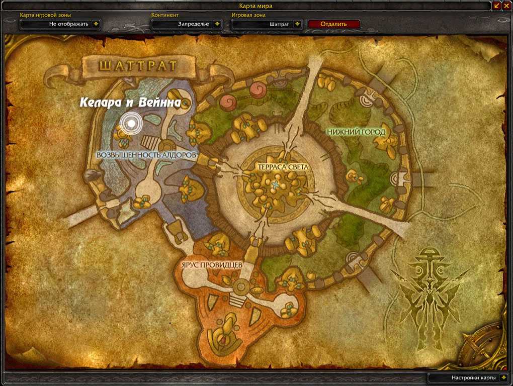 Глаза анимированы и горят красным, внутри наплечников вращаются лавовые сферки. Большинство частей комплекта обменивается на токены в Шаттрате на Возвышенности Алдоров у любого из двух НПЦ – Вейнна Утренняя Звезда (координаты 24.8 27.0), либо Келара (координаты 24.6 27.8). Обе они находятся рядом друг с другом, вот карта с их местоположением: